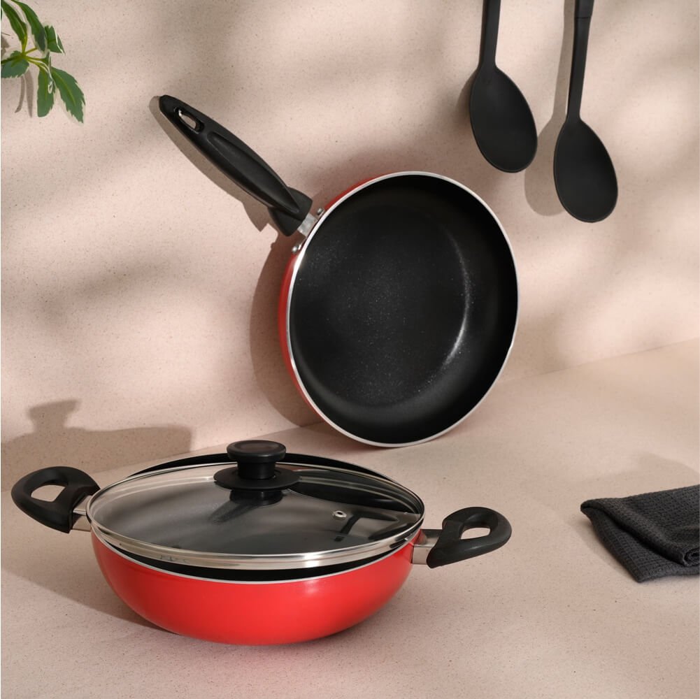 Premium nonstick cookware designed for healthy, low-oil cooking with uniform heat distribution. Scratch-resistant coating ensures long life and smooth cooking performance. Ergonomically designed handles offer safe grip and handling. Compatible with induction and gas stoves for versatile usage. Ideal for modern households, restaurants, and kitchenware stores. Available in multiple sizes and colors for export.
